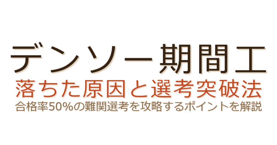 しかし、デンソーの期間工は合格率が約50%といわれる難関選考です。落ちたこと自体は決して珍しいことではありません。