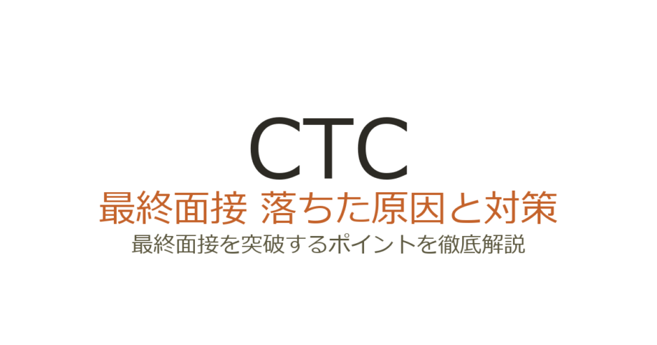 しかし、CTCの面接で落ちる原因の多くは能力不足ではなく、この企業特有の選考基準に対する準備が十分でなかったことにあります。