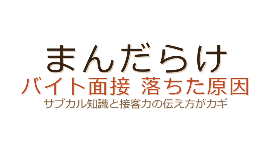 サブカルチャーの知識をうまく伝えられなかったのか、接客業としての適性をアピールできなかったのか、シフト条件に無理があったのか。原因を特定できれば、次の面接で同じ失敗を避けられます。